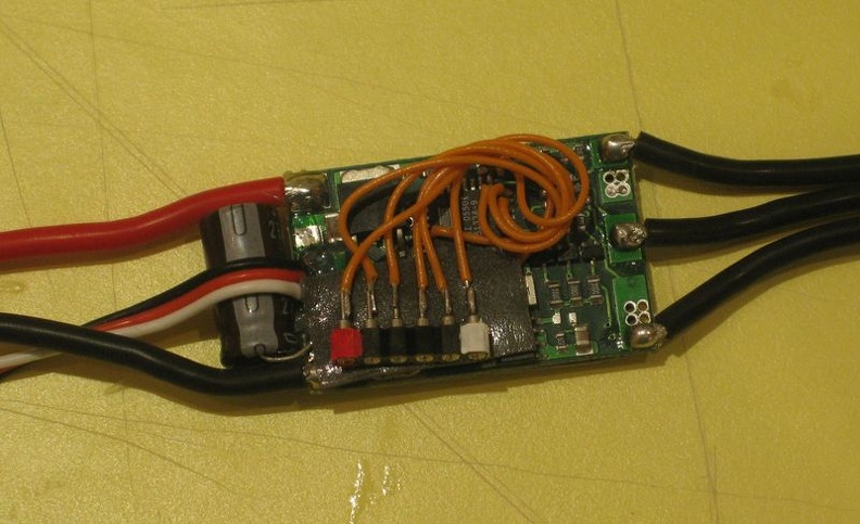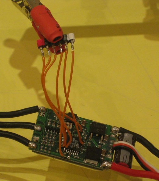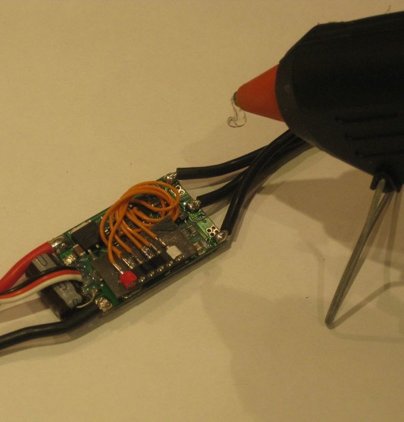 Etape 6 : On fige les fils de programmation avec de la colle chaude pour limiter les risques de cassure des fils avec les vibrations.